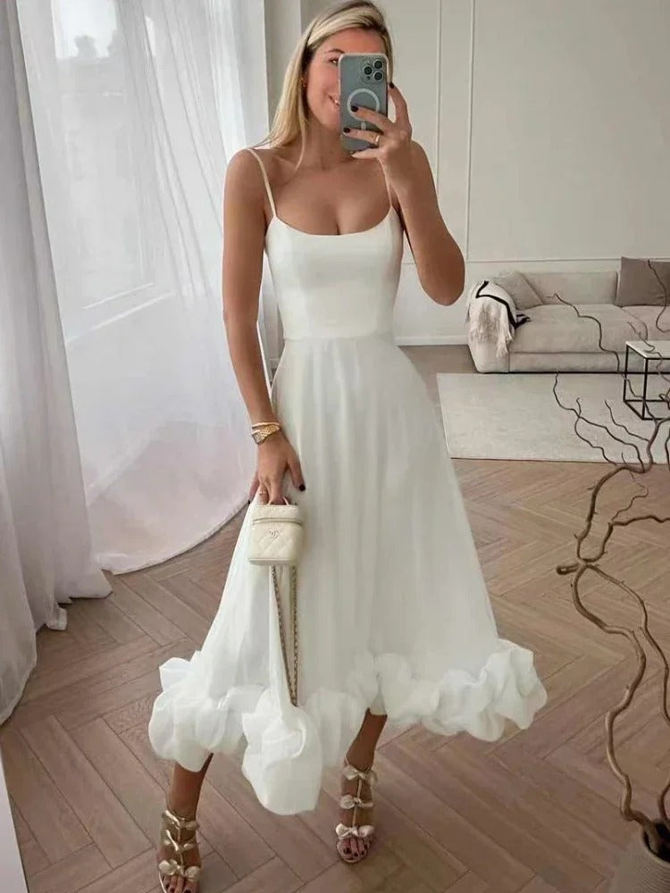 Dieses Kleid ist aus erstklassigen Materialien gefertigt, die nicht nur luxuriös aussehen, sondern sich auch außergewöhnlich angenehm auf Ihrer Haut anfühlen. Egal ob Sie sich auf einer Cocktailparty unter die Gäste mischen oder auf einer Hochzeit tanzen, Sie werden sich mit Leichtigkeit und Selbstbewusstsein bewegen und wissen, dass Sie aus jedem Blickwinkel umwerfend aussehen.